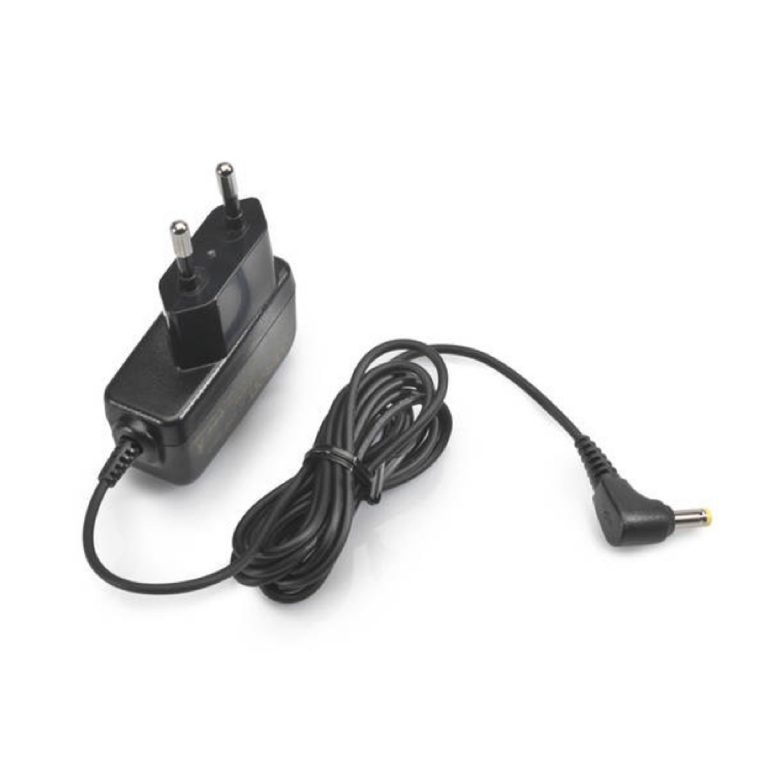 De adapter vormt de verbinding tussen uw bloeddrukmeter en het stopcontact. Hij zet de netspanning van 230V om naar een veilige spanning van 9V gelijkstroom (DC), die geschikt is voor de Visomat bloeddrukmeters. Sluit eenvoudig de plug aan op uw apparaat en steek de adapter in het stopcontact — uw bloeddrukmeter is direct klaar voor gebruik.