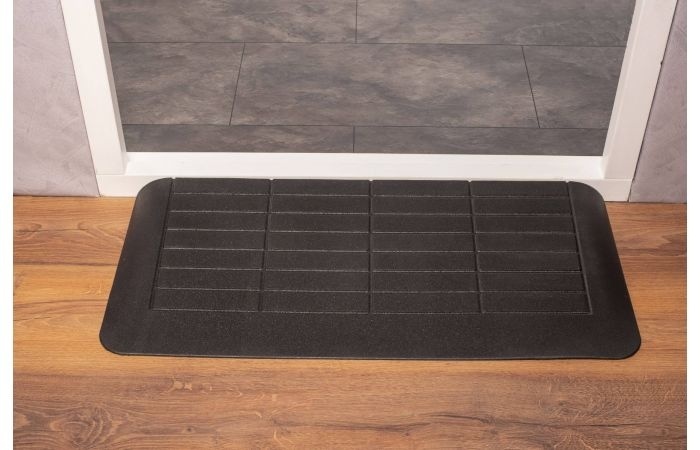 De drempelhulp is stevig en ligt vaak al stabiel op zijn plek zonder bevestiging. Wilt u hem extra goed vastleggen? Dan kunt u hem eenvoudig bevestigen met een montagekit, dubbelzijdig tape of schroeven. De drempelhulp is van rubber en daardoor goed te bewerken.