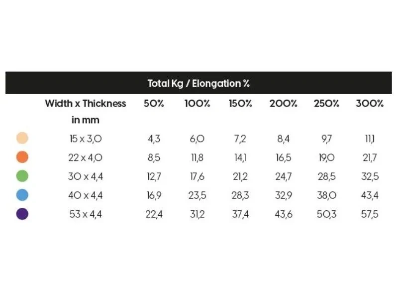 | Paars | Zeer zwaar | 38,0 kg | 56,0 kg | 79,0 kg | 105,0 kg | 167,0 kg |