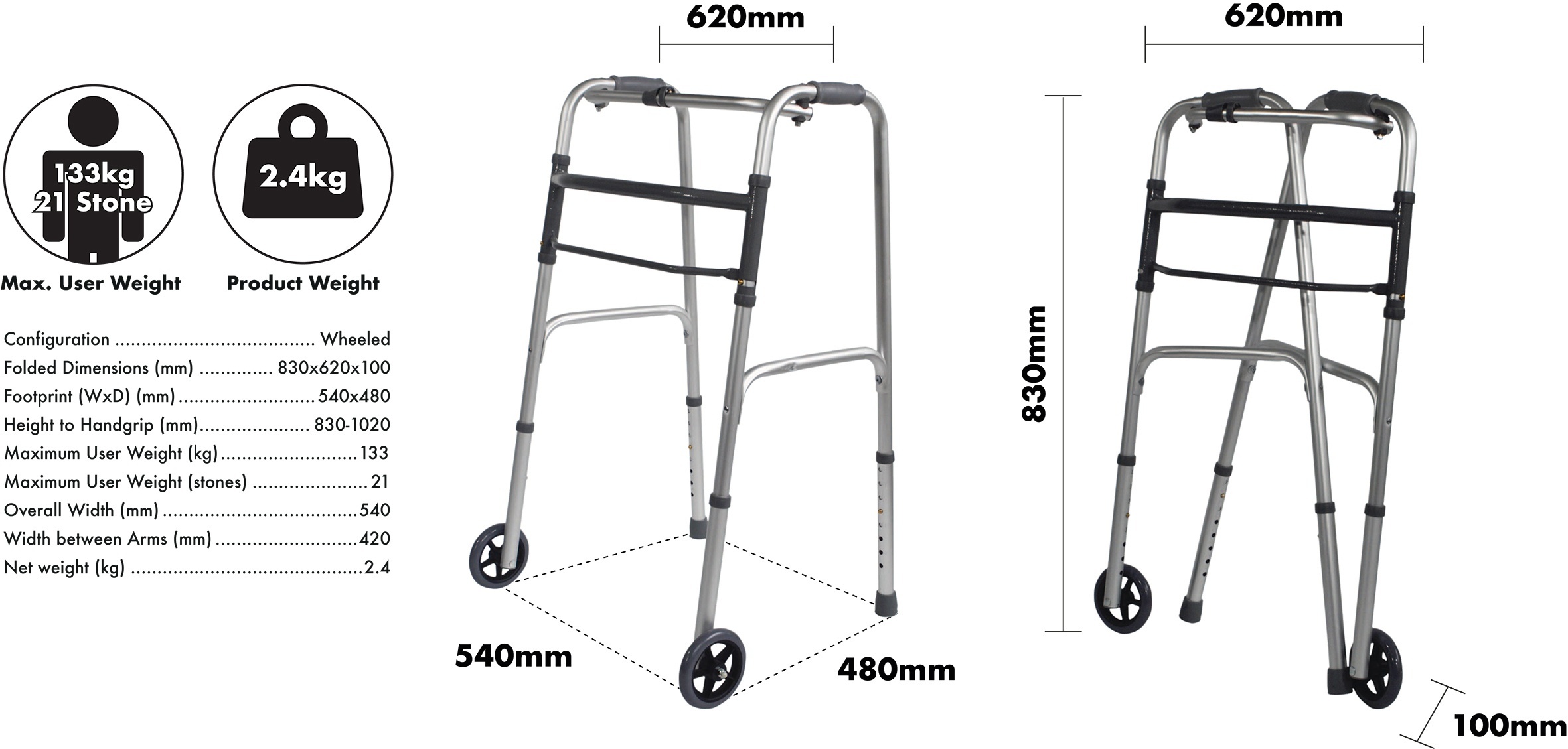 Het looprek is eenvoudig opvouwbaar, waardoor het gemakkelijk te transporteren is en weinig ruimte inneemt wanneer het niet in gebruik is. Met zijn lichte gewicht is het looprek ideaal voor dagelijks gebruik en voor mensen die veel onderweg zijn.