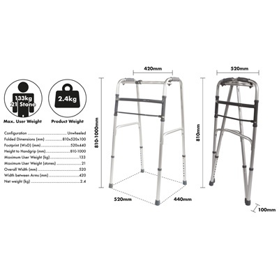 Het looprek is eenvoudig opvouwbaar, waardoor het gemakkelijk te transporteren is en weinig ruimte inneemt wanneer het niet in gebruik is. Met zijn lichte gewicht is het looprek ideaal voor dagelijks gebruik en voor mensen die veel onderweg zijn.