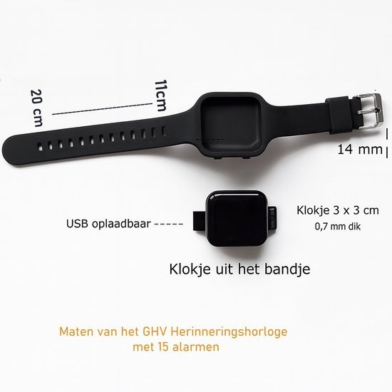 De instellingen van het horloge zijn eenvoudig handmatig aan te passen door ouder of begeleider, maar niet makkelijk per ongeluk te wijzigen door spelende kinderhanden. Hierdoor blijft het horloge betrouwbaar in gebruik. Naast de tijd en alarmfuncties beschikt het horloge ook over een countdownfunctie, waardoor het breed inzetbaar is voor verschillende herinneringen gedurende de dag.