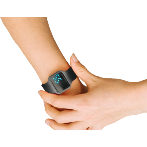 Het horloge is licht van gewicht en voorzien van een flexibel siliconen bandje dat comfortabel draagt. Het is geschikt voor polsomtrekken van circa 13 tot 17 cm en speciaal afgestemd op kinderpolsen. Dankzij een extra fixatiegaatje blijft het bandje netjes zitten en voorkomt het los bewegen. Losse bandjes zijn verkrijgbaar in 11 verschillende kleuren (zwart, wit, roze, roze camouflage, blauw, geel, groen, oranje, paars, blauw/groen, perzik/zalm), zodat eenvoudig kan worden afgewisseld.