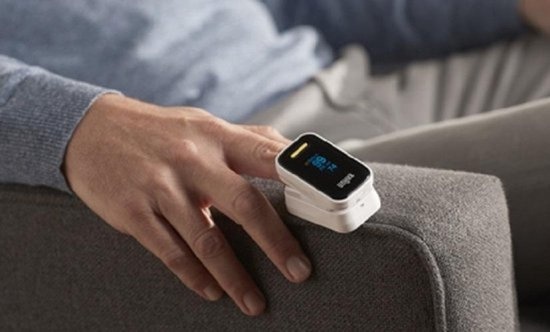 De saturatiemeter meet het zuurstofgehalte in je bloed en de hartslag.