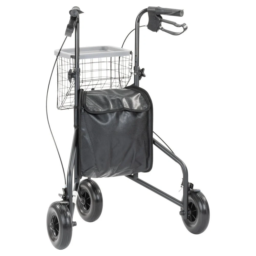 Rollator | Driewiel | Basic | Zwart | Mand | Dienblad