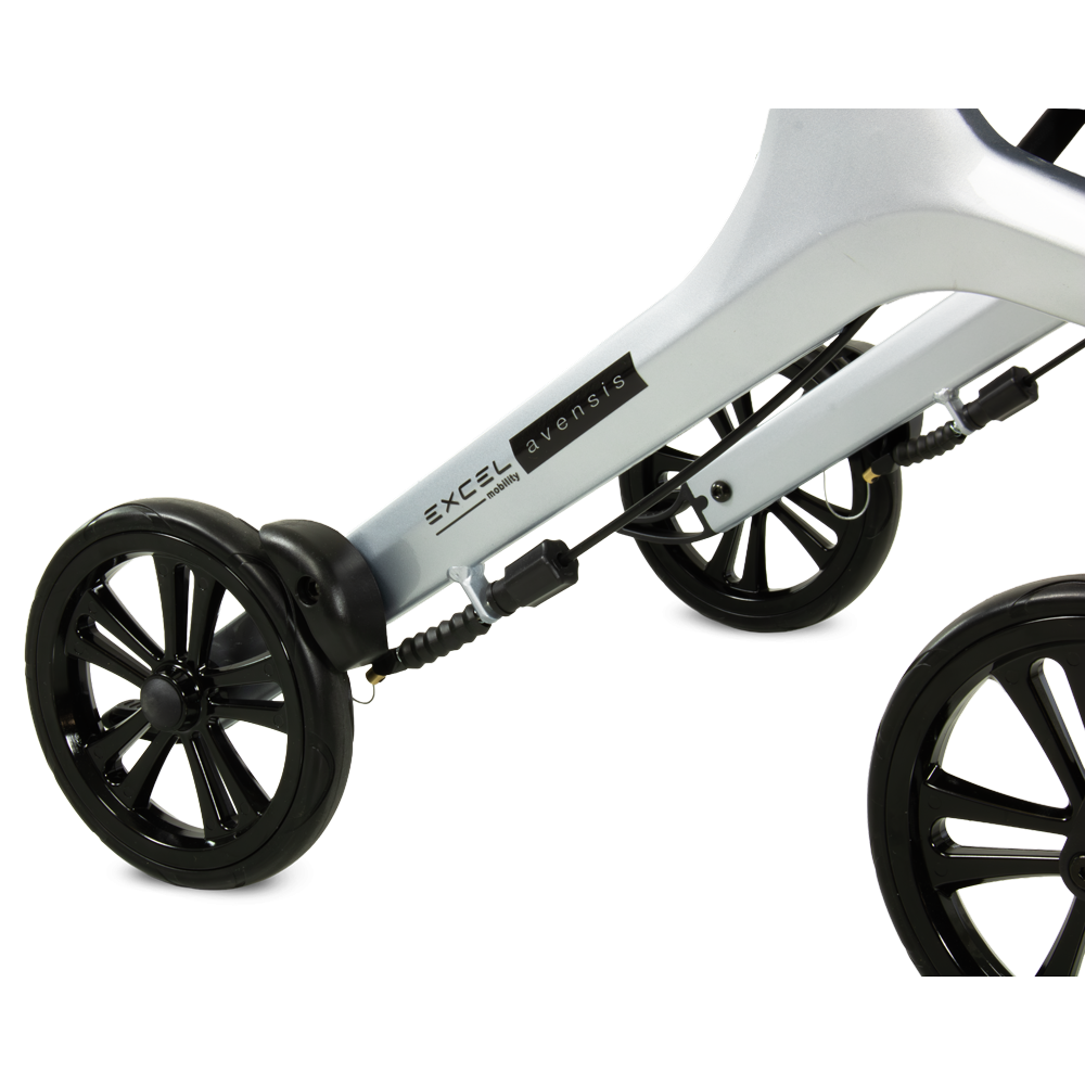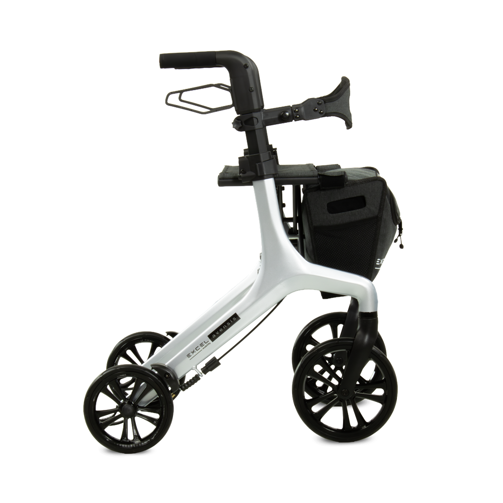 De Excel Avensis is ontworpen voor gebruikers die comfortabel en met vertrouwen willen blijven bewegen. Het sterke maar lichte frame van aluminium-magnesium maakt de rollator bijzonder stabiel, terwijl het strakke, naadloze ontwerp zorgt voor een moderne uitstraling. De volledig geïntegreerde remkabels voorkomen hinderlijke losse kabels en dragen bij aan een veilig en opgeruimd geheel.