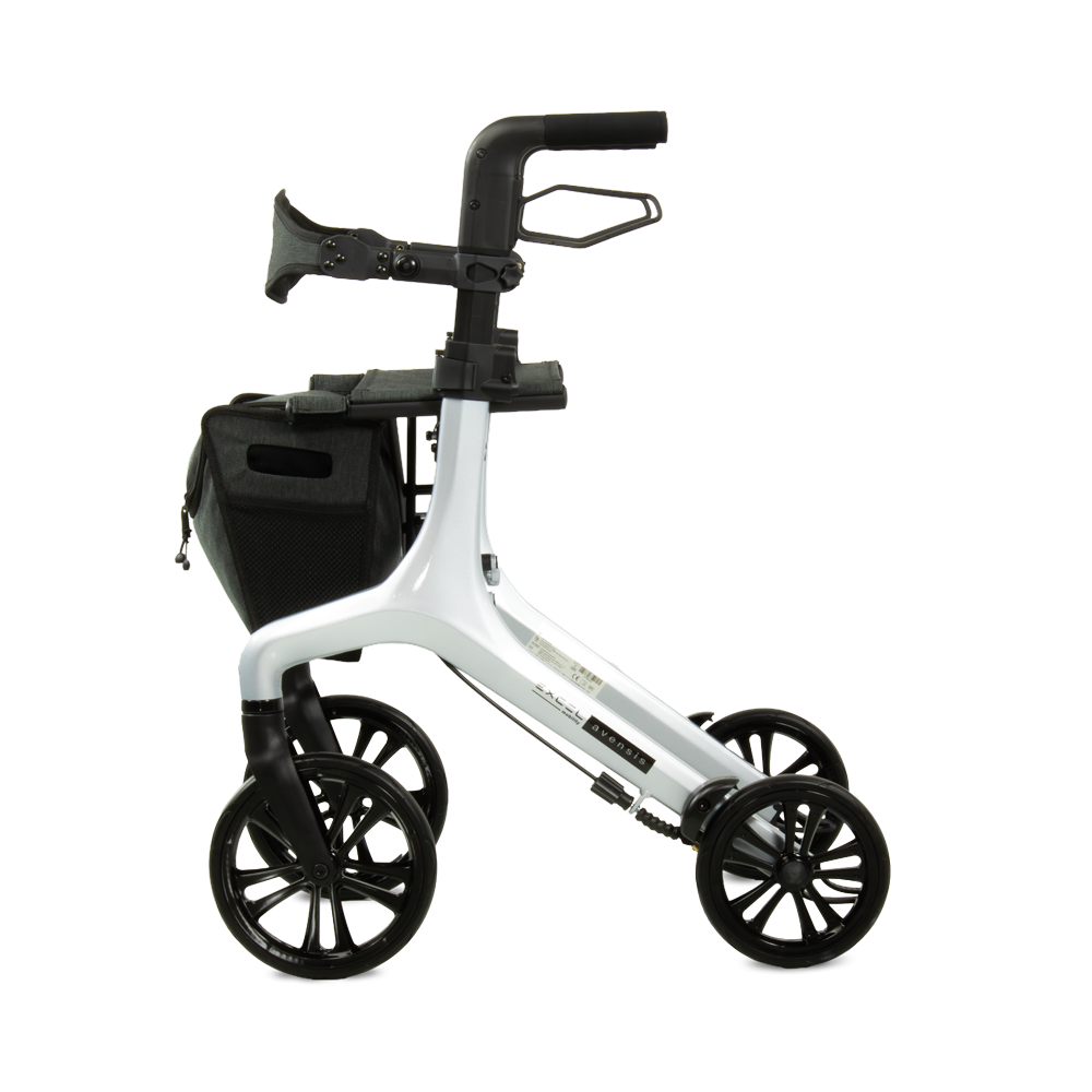 De Avensis wordt standaard geleverd met een afsluitbare tas met rits, ideaal voor het veilig meenemen van persoonlijke spullen. De rollator is eenvoudig inklapbaar en blijft compact, zodat u hem moeiteloos kunt meenemen of opbergen. Verkrijgbaar in twee maten (S en M) voor een pasvorm die aansluit op uw lichaamslengte.