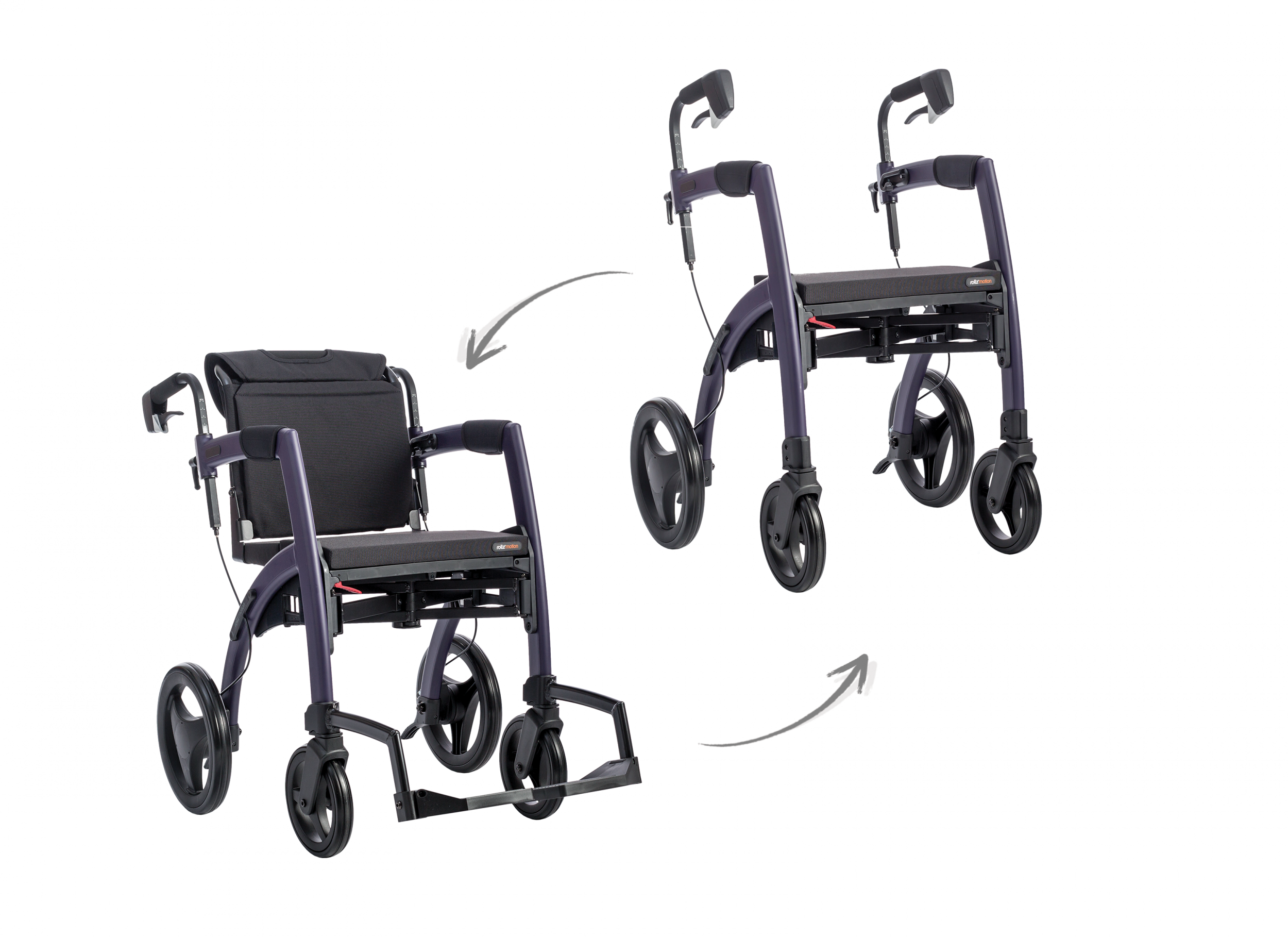 - Rollator en rolstoel in één – snel en eenvoudig om te bouwen