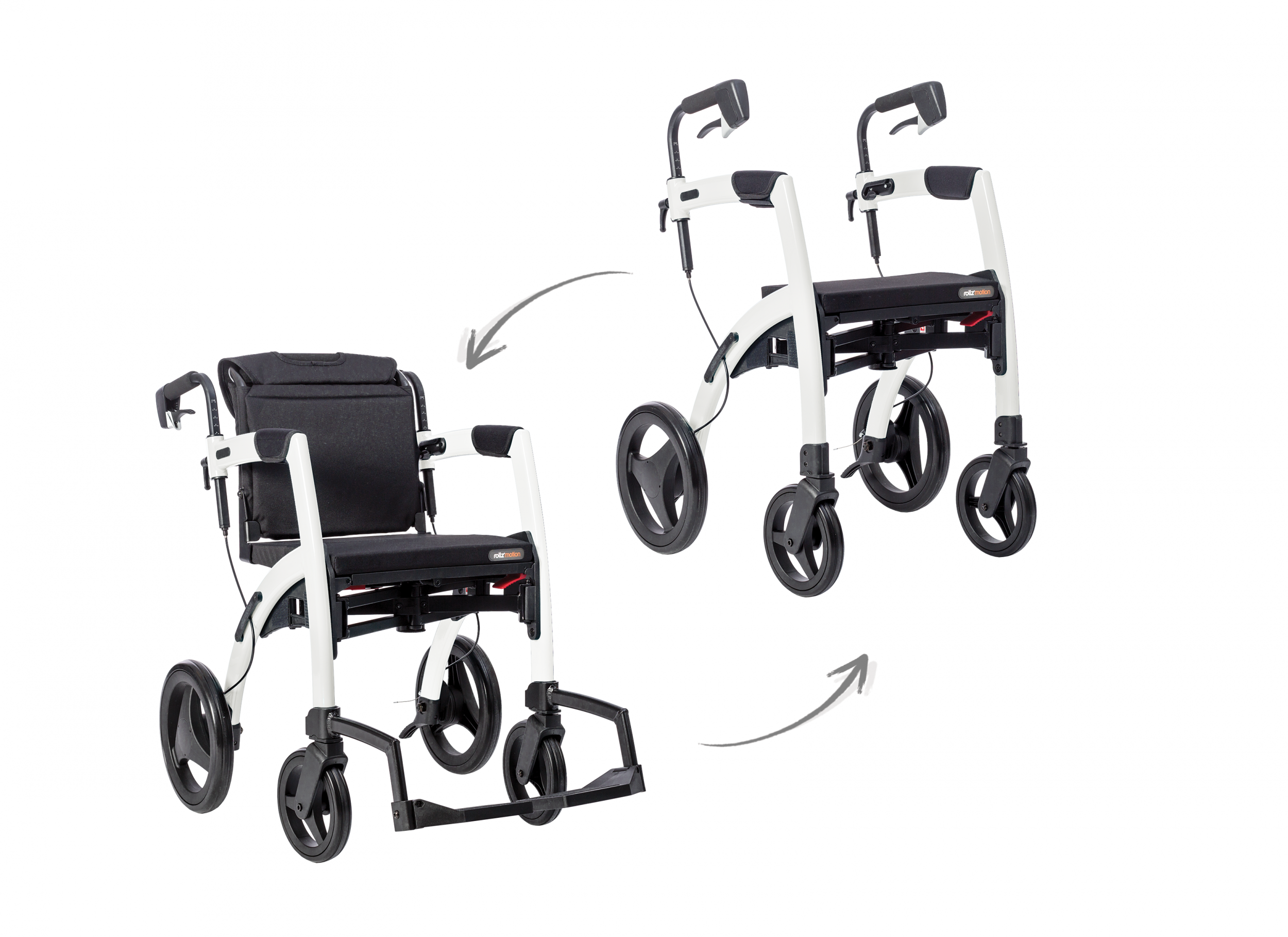 - Rollator en rolstoel in één – snel en eenvoudig om te bouwen