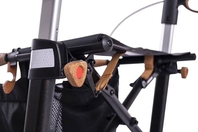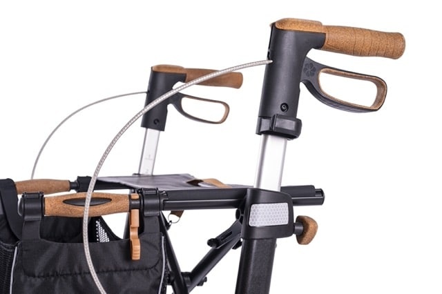 De allround rollator biedt ook buiten de stad optimaal comfort. De duwhandvatten zijn gemaakt van huidvriendelijk cork TPE, dat zorgt voor schokabsorptie, warmtecomfort en een antislip grip. Daarnaast bieden grote, met cork TPE beklede armsteunen extra ondersteuning en voorkomen drukpunten bij het zitten.