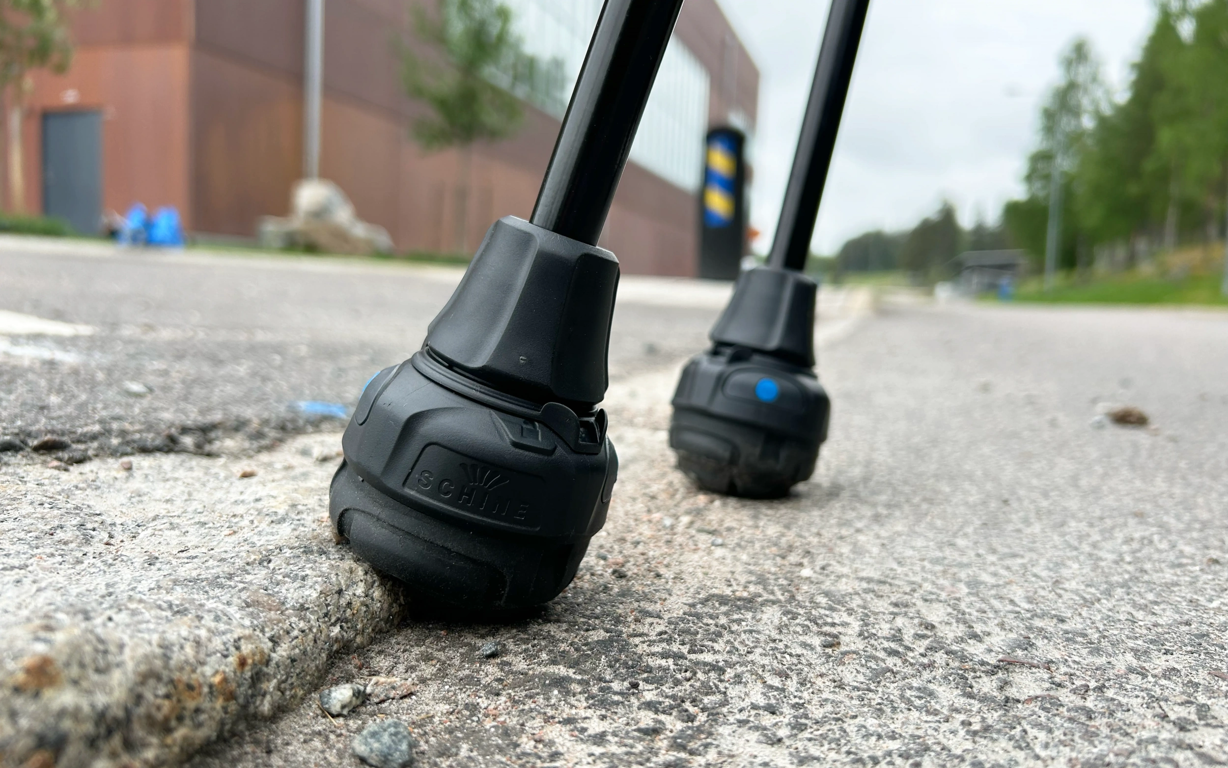 In vergelijking met traditionele rubberdoppen biedt de Schine Walk meer wrijving en daardoor een betrouwbare grip op uiteenlopende ondergronden. De bredere basis vergroot het contact met de grond, wat bijdraagt aan extra zekerheid in verschillende omgevingen, zowel binnen als buiten.