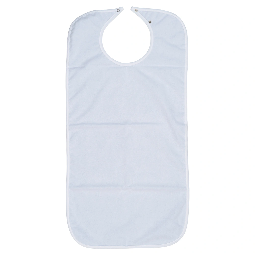 Deze praktische slab met waterdichte PVC achterzijde beschermt tegen morsen en voorkomt dat uw kleding vies wordt. Dankzij de drukknopen kan de slab eenvoudig worden geopend en gesloten.