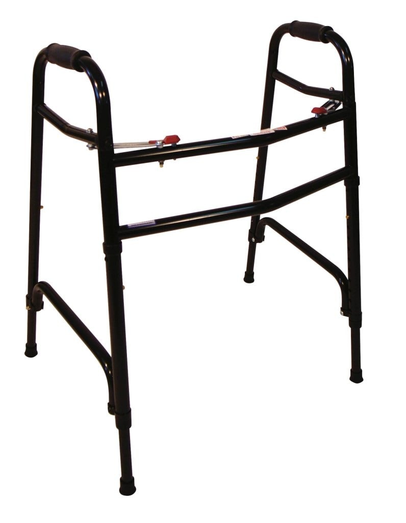 Het frame is licht van gewicht, maar tegelijkertijd zeer stevig. De zachte handgrepen zorgen voor een comfortabele grip en de hoogte is eenvoudig zonder gereedschap aan te passen, zodat het looprek altijd goed op uw lichaam wordt afgestemd.